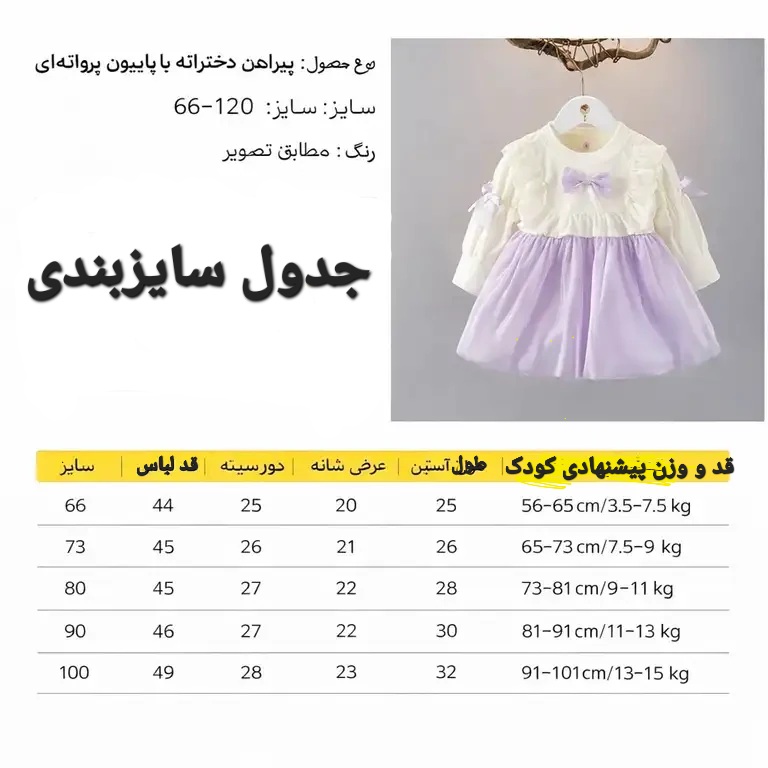 جدول سایزبندی در عکس