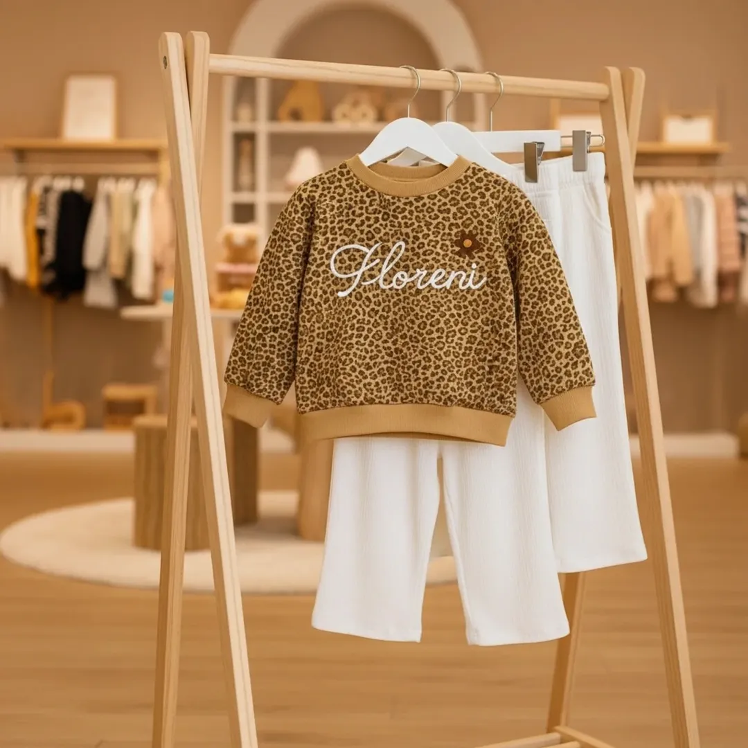 بلوز شلوار دخترانه پلنگی دورس و شلوار مراکشی