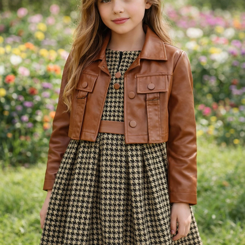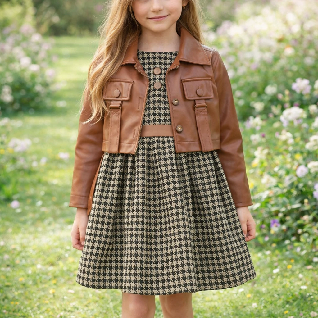 ست کت سارافون دخترانه چرم پاییزی و بهاری ۲ تا ۸ سال